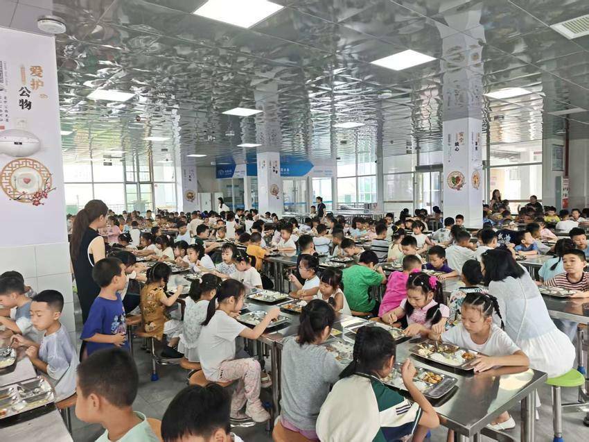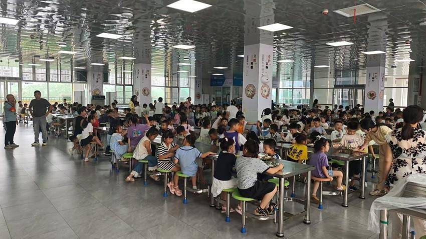 在文星小学食堂成都赚配网,学生通过刷脸即可完成支付,高效便捷。一年级新生在老师指导下学习取餐礼仪,老师手把手教孩子们正确端餐盘、按需取餐,培养良好的用餐习惯。其他年级学生正在老师的带领下错峰就餐,秩序井然。